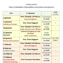 Abbiamo diversi momenti di incontri per piccoli, adolescenti e adulti per educare alla fede (Scuola domenicale e catechismo per ogni età), per riscoprire il messaggio della Bibbia (Studio biblico e animazione teologica), per imparare nuovi canti (con la Corale o prima del culto), per recitare nel gruppo teatro, per condividere esperienze nei diversi gruppi femminili, per partecipare alla discussione di temi ed esperienze nelle riunioni di quartiere, per impegnarci verso chi ha bisogno in diverse attività di solidarietà e con un’attività di Ri-circolo di vestiti usati da zero a diciotto anni. Ci riuniamo per prendere decisioni in Assemblea, gestiamo una Casa per anziani, l’Asilo Valdese, e un cimitero ai Jallà.