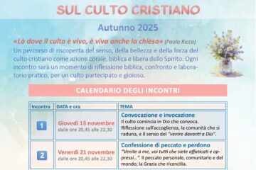 Ogni domenica mattina, culto domenicale, alle ore 10, nel Tempio valdese con entrata in via Diaz. Ti aspettiamo!