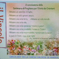 La Chiesa valdese di Pinerolo conta un migliaio di persone e il contributo della comunità nel dibattito pubblico riguarda la laicità delle istituzioni e della scuola, la convivenza democratica e pluralista, la libertà religiosa per tutte le confessioni, la libertà di non credere, l’accoglienza dei diversi orientamenti sessuali, le disposizioni di fine vita, l’accoglienza dei migranti, la salvaguardia del creato.