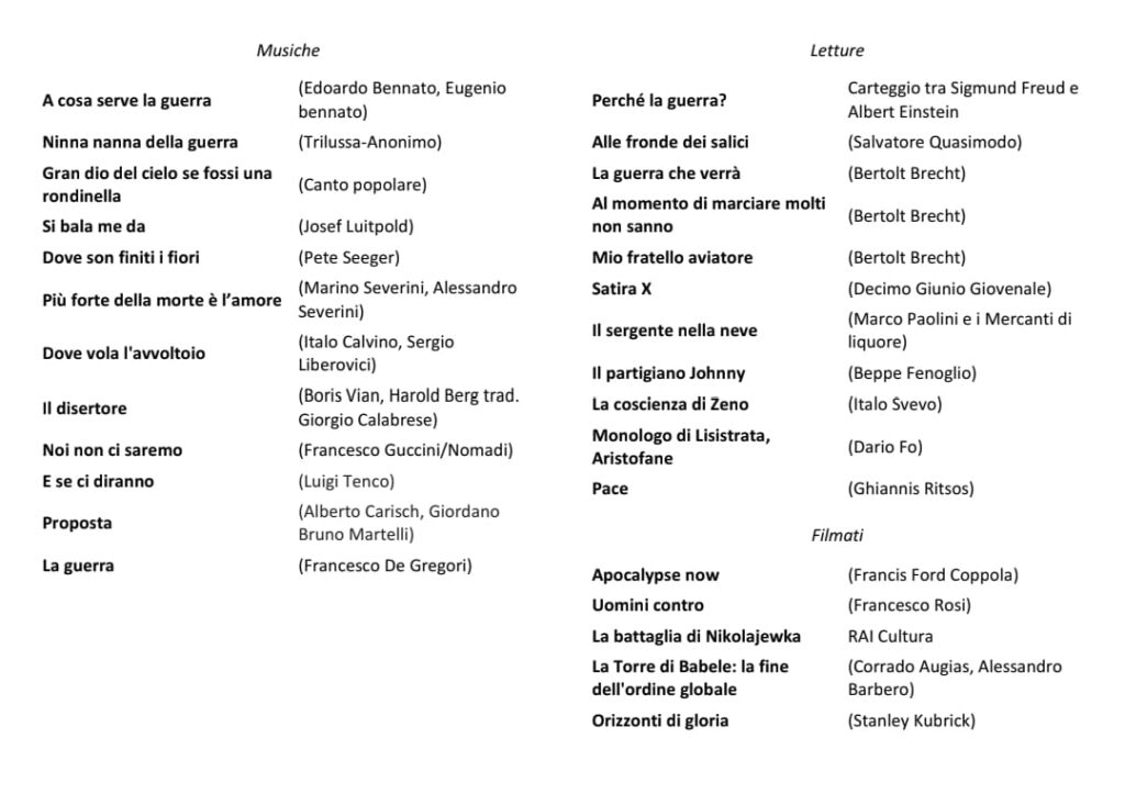 Concerto e letture: Cantare la pace contro la guerra Coro “Noi ci proviamo” 8-11-2025 ore 21.00 Tempio Pinerolo Repertorio