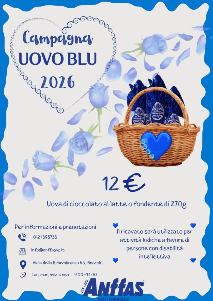 L’uovo blu, vendita solidale per Anfass 22 -03 -2026 a fine culto Tempio Pinerolo