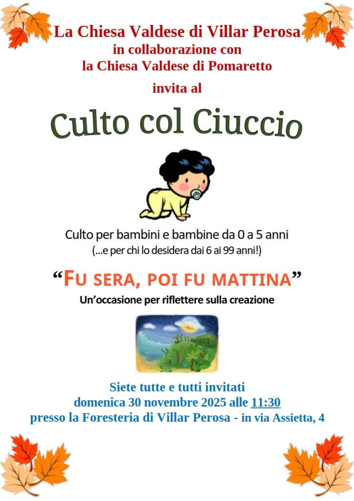 Domenica 30 novembre alle 11:30 alla Foresteria valdese in via Assietta 4.