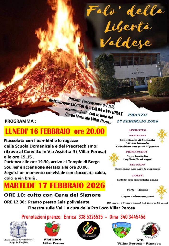 Martedì 17 febbraio culto alle ore 10 nel tempio in borgo Soulier, con predicazione del pastore Daniele Bouchard. Alle ore 12,30 pranzo comunitario nei locali di Una finestra sulle Valli, a cura della Pro Loco.