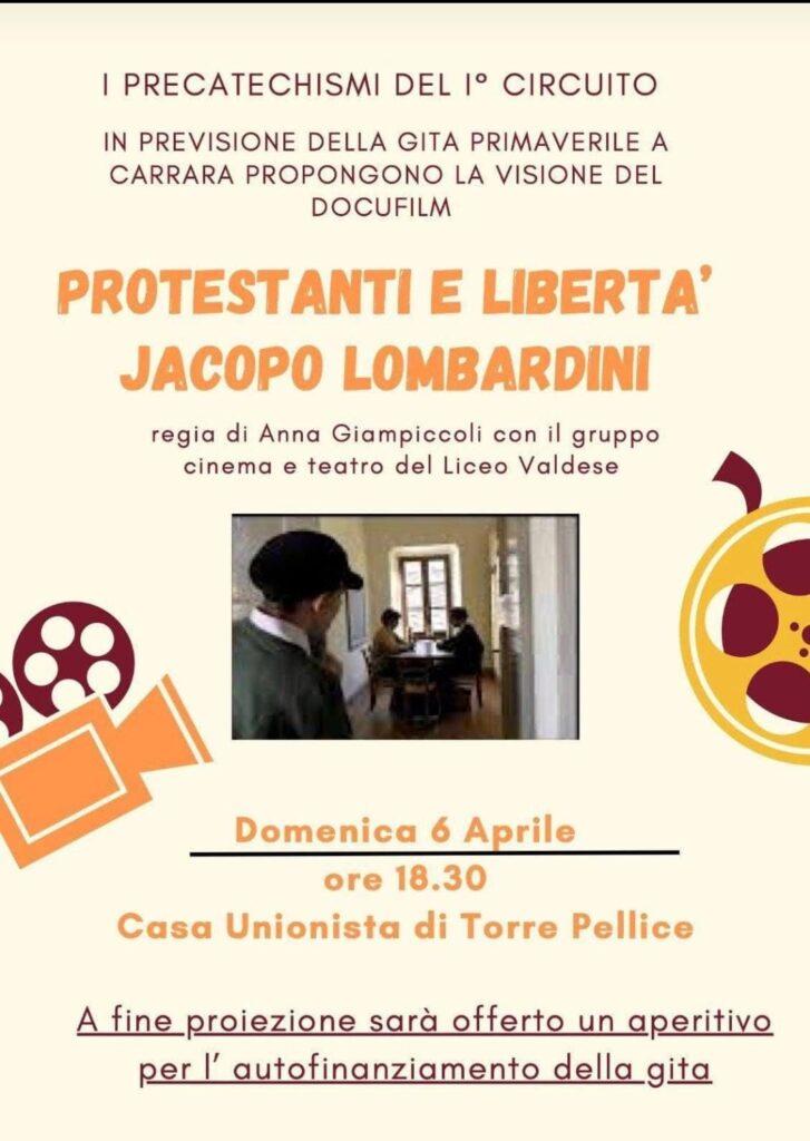 I ragazzi e le ragazze che frequentano i Precatechismi delle chiese valdesi del I Circuito (val Pellice), in previsione della gita primaverile a Carrara, propongono la visione del docufilm “Protestanti e libertà Jacopo Lombardini” domenica 6 aprile, alle ore 18,30, alla Casa Unionista di Torre Pellice.